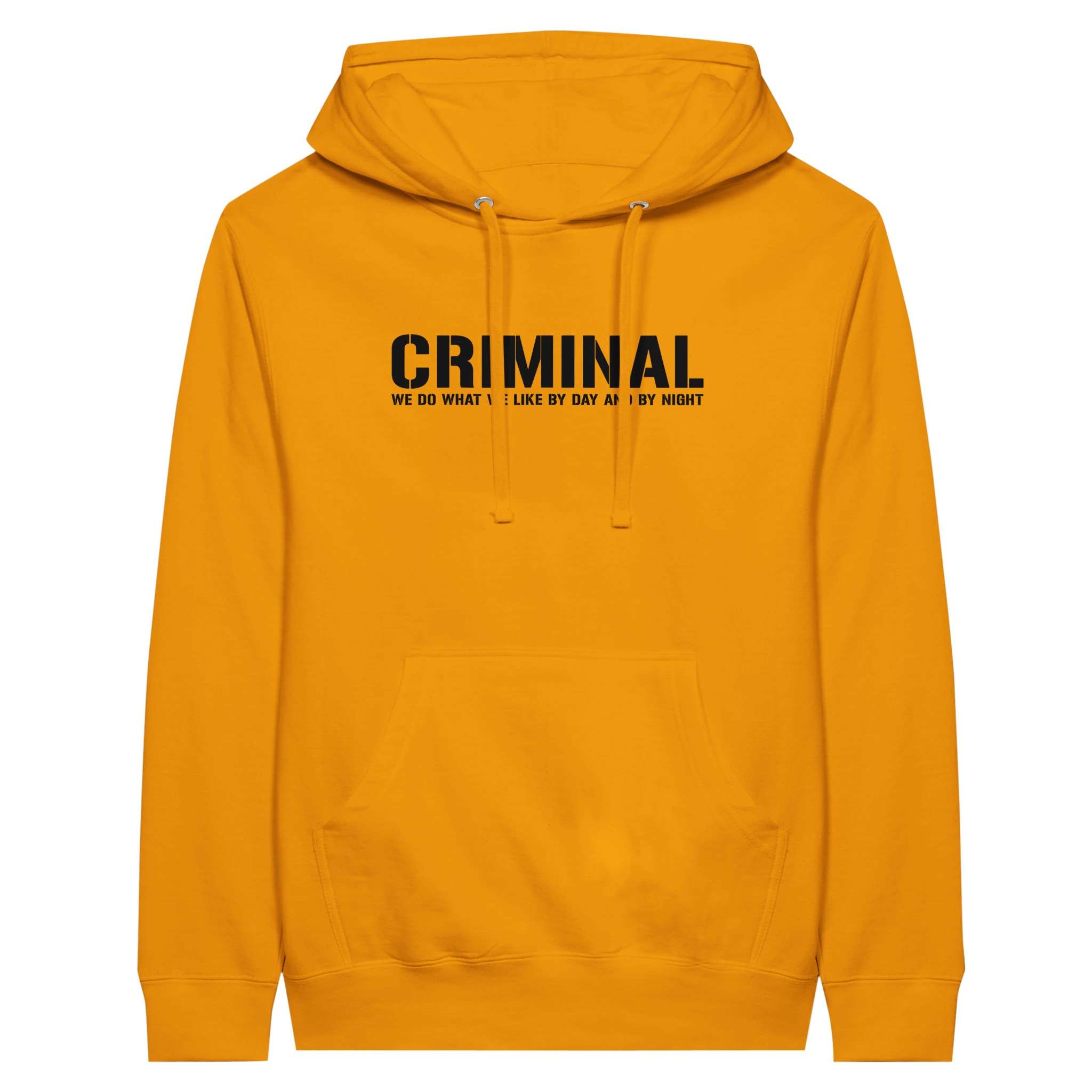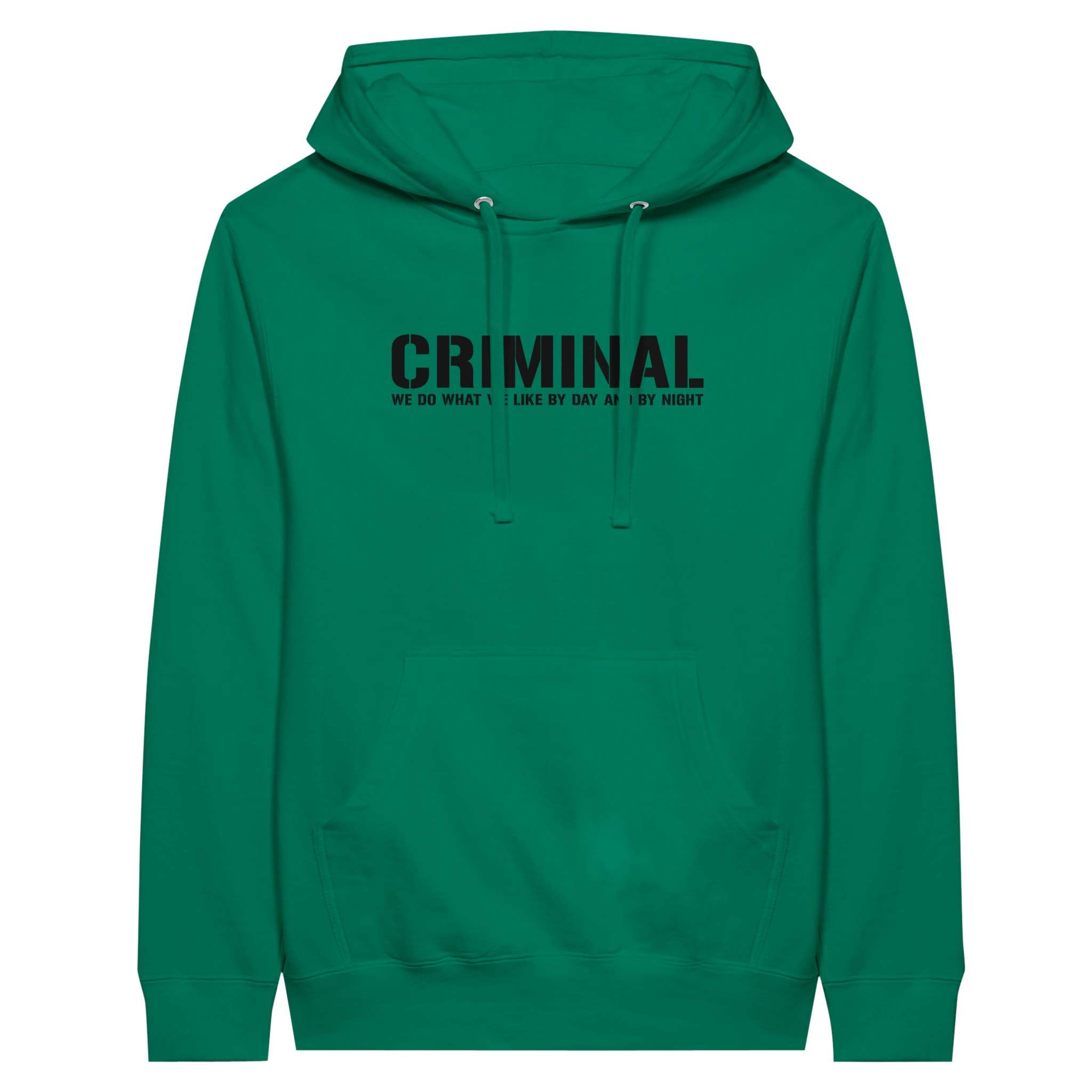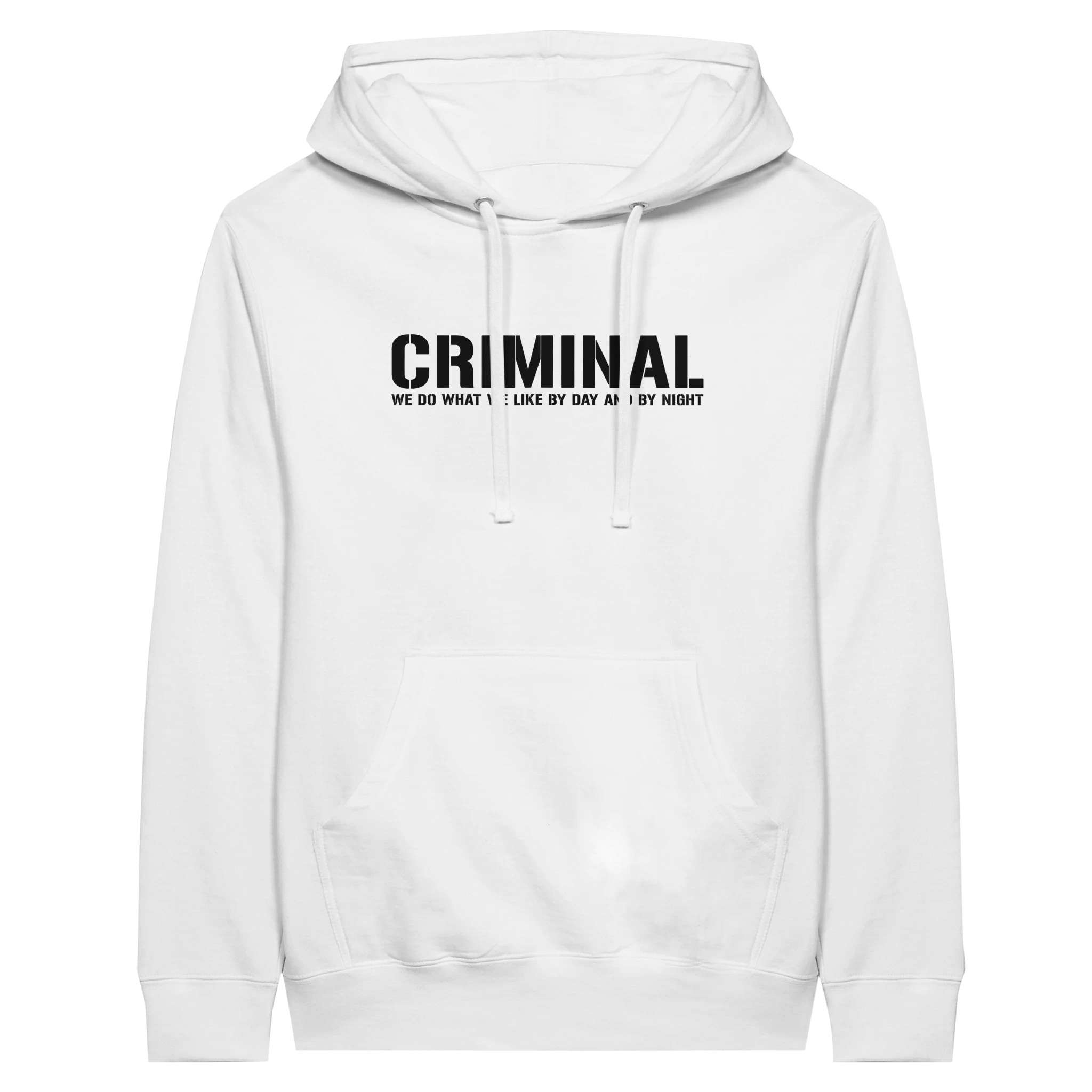 Der „CRIMINAL“-Hoodie ist dein Statement mit urbanem Vibe, hochwertigem Stoff und dem markanten Druck. Die weiche Innenseite trifft auf eine Unisex-Passform, die sitzt wie sie soll – bequem, locker, selbstbewusst.